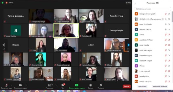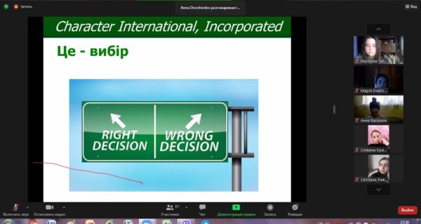 Працюємо тиждень… 29 березня 2021 року розпочалася серія семінарів «Виховання характеру дітей», «Виховання характеру дітей. Конфлікти та їх вирішення» для студентів та викладачів спеціальності «Дошкільна освіта» Педагогічного факультету Прикарпатського національного університету імені Василя Стефаника.Тренер програми «Character International» – доктор психологічних наук, психотерапевт, професор Джон Кук (США, м. Даллас, Техас ), перекладачка – директорка центру альтернативної освіти KAIZEN Анна Довженко.
