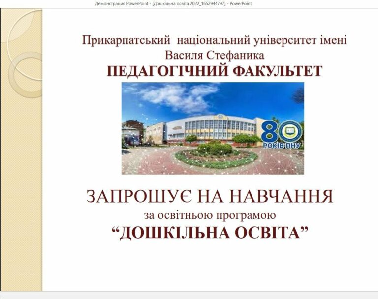 19 травня 2022 р. – в День української вишиванки відбулася профорієнтаційна зустріч зі студентами 4 курсу спеціальності 012 «Дошкільна освіта» Івано-Франківського фахового коледжу. У засіданні прийняли участь: завідувачка відділення дошкільної освіти Івано-Франківського фахового коледжу О.М. Сидорук, радник декана Педагогічного факультету доц. С.А.Недільський, завідувачка кафедри ТМДСО, проф. Н. В. Лисенко, гарант програми «Дошкільна освіта» проф. Л.О. Мацук, гарант програми «Спеціальна освіта» проф. С.В.Чупахіна, а також викладачі кафедри теорії та методики дошкільної та спеціальної освіти. Учасники зустрічі отримали інформацію про переваги та можливості продовження навчання на першому (бакалаврському) рівні вищої освіти за ОП 012 «Дошкільна освіта», а також ознайомилися з оновленими умовами та термінами Вступної кампанії-2022.