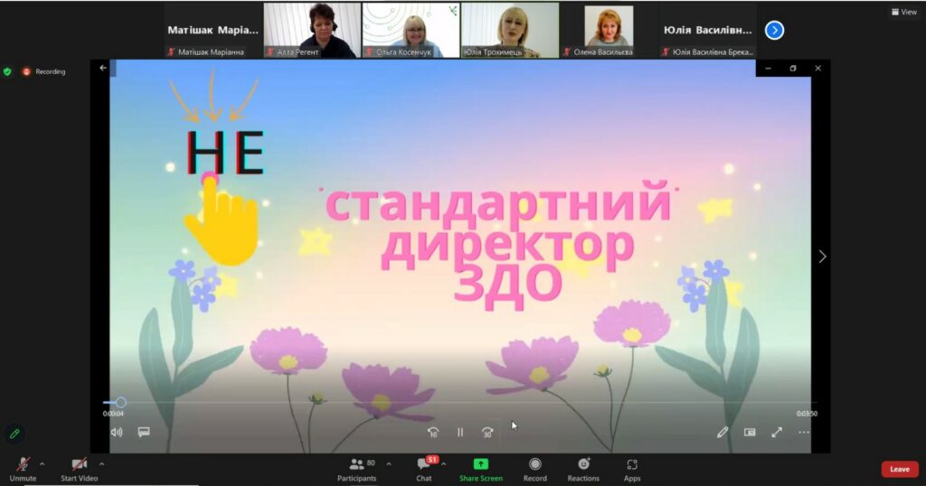 Модератори онлайн-зустрічей та спікери представили зміст і особливості формування загальних та професійних компетентностей керівників ЗДО, окреслили сутність професійних функцій керівників та специфіку їх реалізації в сучасних ЗДО в умовах воєнного часу. Процес навчання проходив у позитивній теплій атмосфері з активним залученням слухачів до діалогу, взаємодії, обміну ідеями та досвідом.