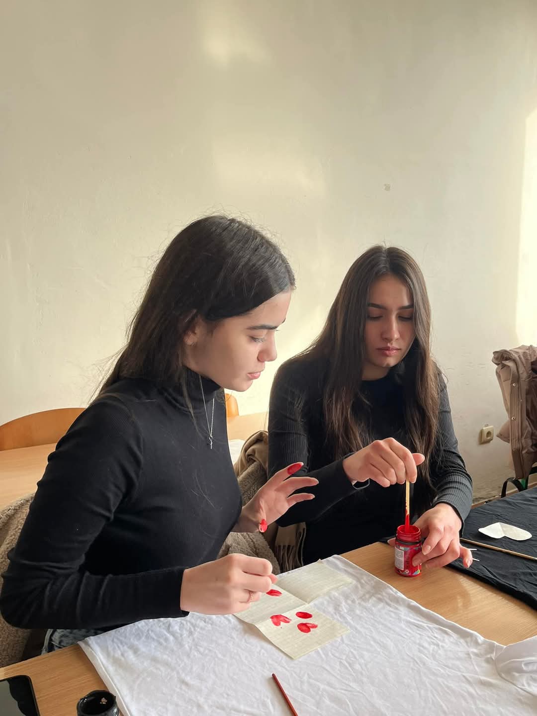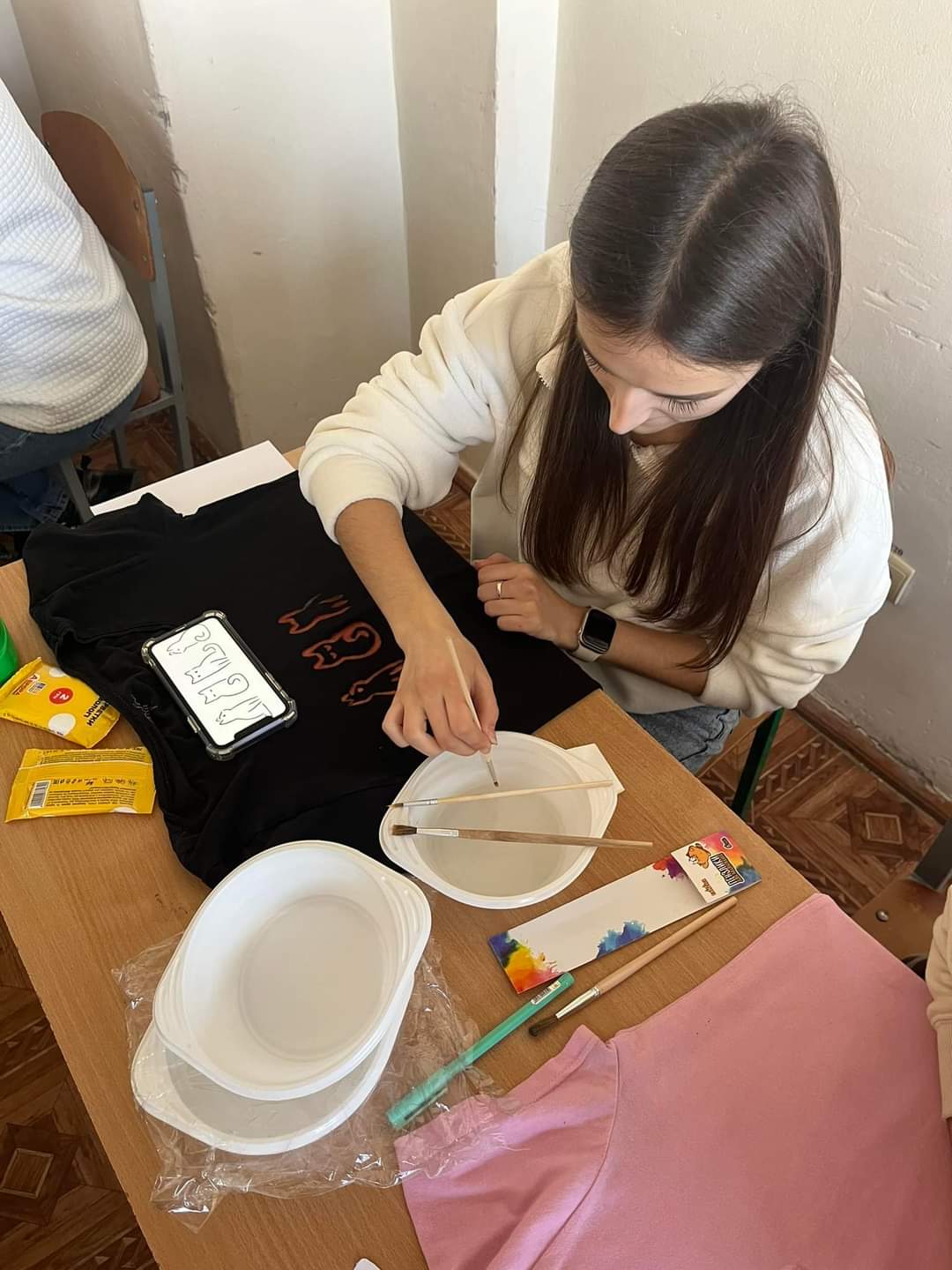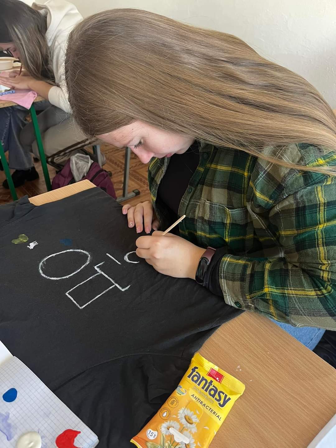 18.11. 2024 на парах з дисципліни «Сучасні художні техніки для дітей раннього і дошкільного віку» (аситент кафедри Оксана Вацеба) здобувачі ІІІ курсу першого (бакалаврського) рівня вищої освіти опрацьовували нетрадиційні техніки з малювання на тканині.