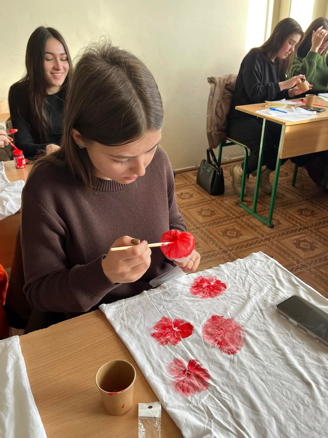 Студенти отримали море вражень і емоцій, розмальовуючи футболки різними техніками. Такі практичні заняття зближують студентів і надовго залишаються в памʼяті як приємний спогад про спільно проведений час.
