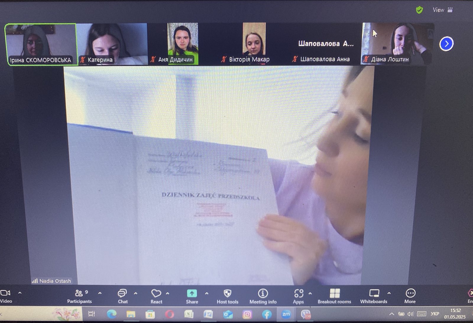 1 травня відбулася чергова зустріч студентів проблемної групи «Психолого-педагогічні аспекти роботи вихователя ЗДО», керівник – канд. пед. н., доц. Ірина Скоморовська. На зустріч було запрошено студентку 4 курсу з.ф.н. ОП «Дошкільна освіта», виховательку приватного садка «Намальовані слоненята» (с.Бараново, Республіка Польща) Надію Осташ, яка поділилася досвідом роботи вихователя в польському ЗДО. Спікерка розповіла про організацію процесу адаптації дошкільників до садка; використання казкотерапії, догтерапії та альпакотерапії в роботі з дошкільниками; проведення розважальних заходів для вихованців (н-д, пінної дискотеки, спортивного свята), а також наголосила на особливостях ведення вихователем документації.