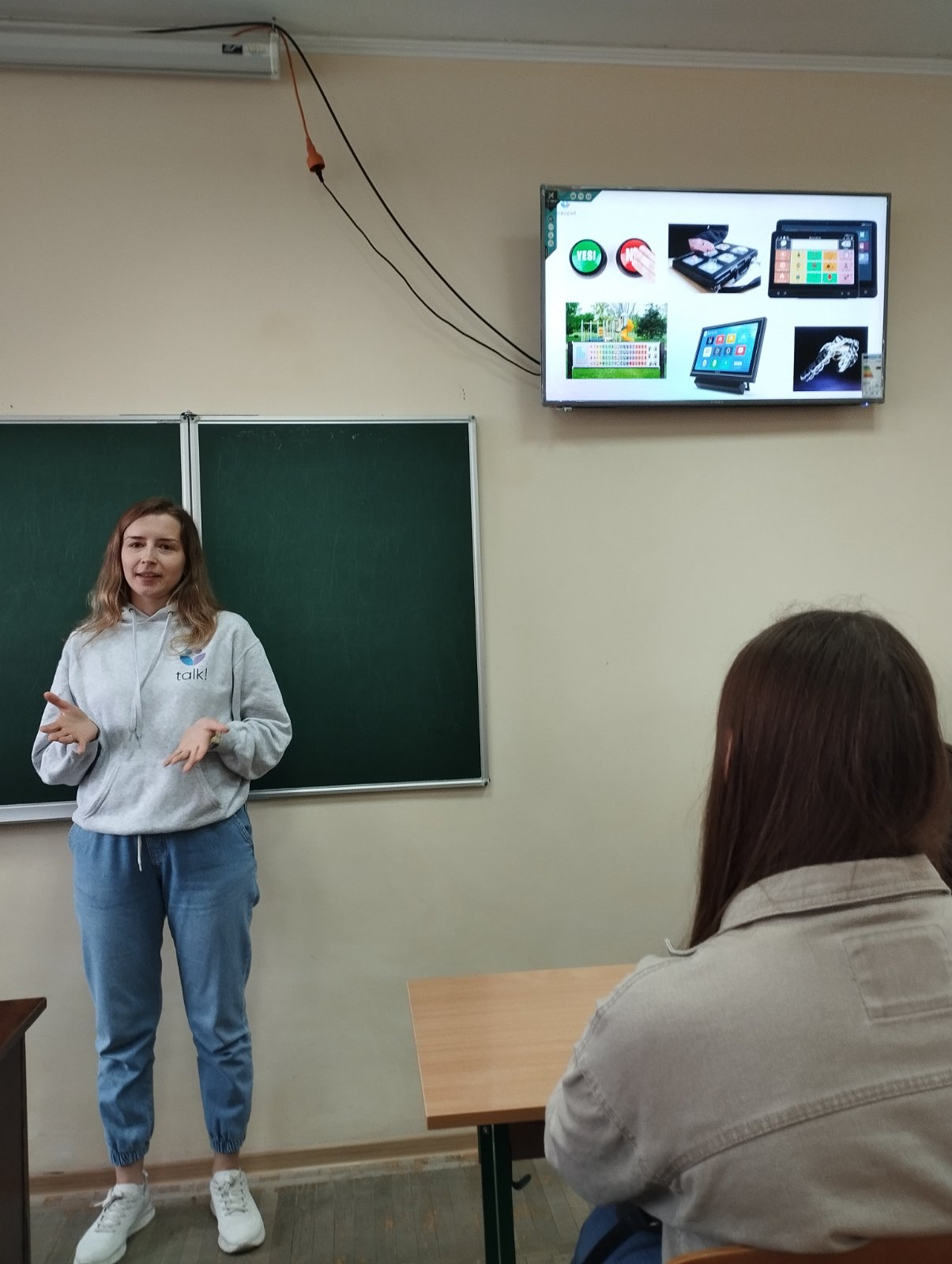 6 травня 2025 року здобувачі та викладачі кафедри теорії та методики дошкільної і спеціальної освіти Педагогічного факультету ПНУ імені Василя Стефаника мали змогу поспілкуватися з фахівчинями ГО “Говори” Соломією Андрушків та Наталією Цап. Діяльність громадської організації — це приклад щирої турботи про людей із мовленнєвими порушеннями, а також про їхнє право бути почутими, зрозумілими та повноцінно інтегрованими в суспільство. ГО “Говори” забезпечує доступ до світових цифрових інструментів і технологій особам з інвалідністю, розладами аутистичного спектра та порушеннями комунікації в Україні. У процесі зустрічі було представлено практичні ініціативи, які вражають своєю актуальністю, глибиною і професійністю. Соломія Андрушків та Наталія Цап розповіли і продемонстрували практично, як працюють застосунки Tippy Talk, “Я кажу”, Look to Speek і як вони допомагають невербальним дітям та дорослим. Повідомили, що розробники планують упроваджувати Tippy Talk в освітній процес ЗДО та шкіл, де навчаються діти з порушеннями мовлення.