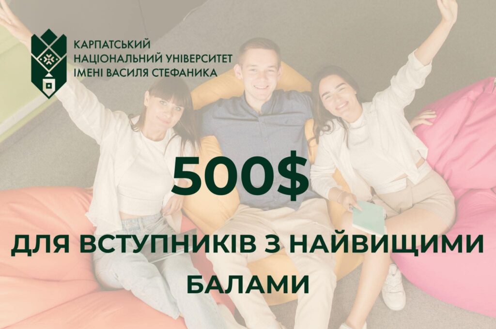 ОСВІТНІЙ БОНУС 500 $ ДЛЯ ВСТУПНИКІВ З НАЙВИЩИМИ БАЛАМИ!