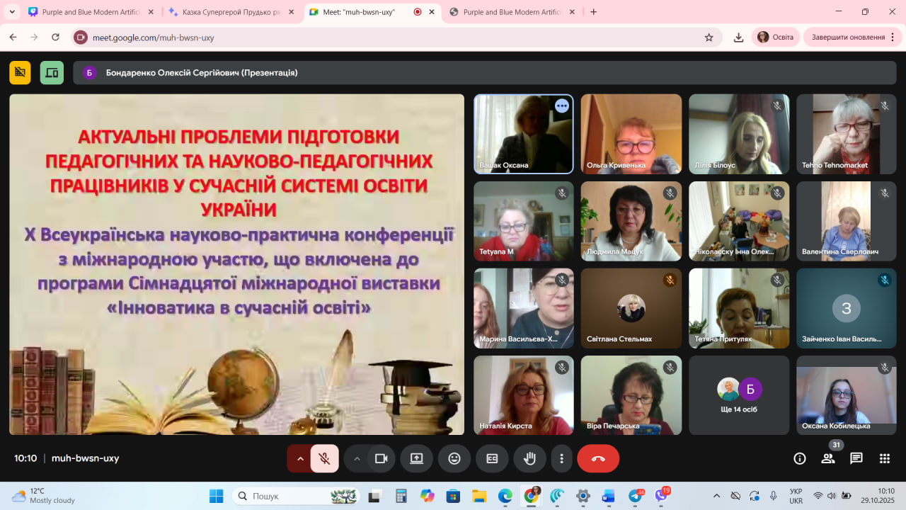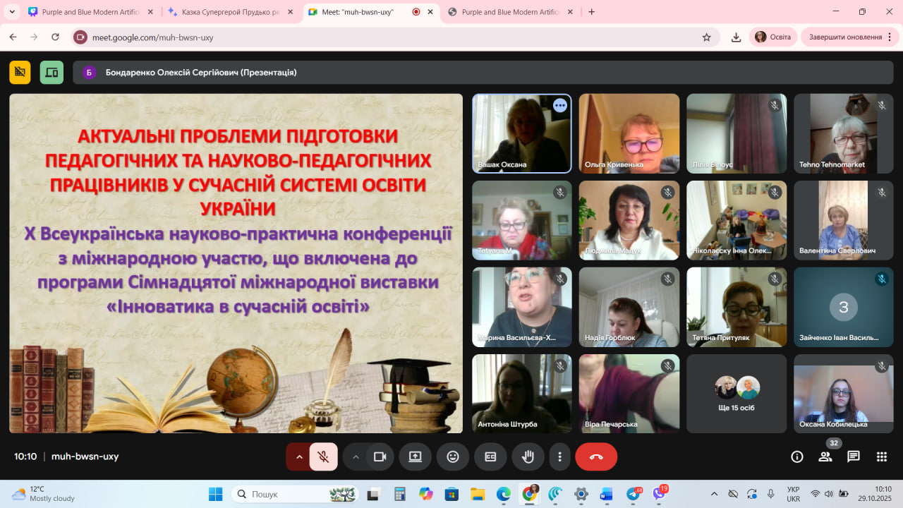 Викладачі кафедри теорії та методики дошкільної і спеціальної освіти Карпатського національного університету взяли участь у Х Всеукраїнській науково-практичній конференції з міжнародною участю «Актуальні проблеми підготовки педагогічних та науково-педагогічних працівників у сучасній системі освіти України», що проходить у межах Сімнадцятої міжнародної виставки «Інноватика в сучасній освіті» (29–30 жовтня 2025 р., м. Умань).
