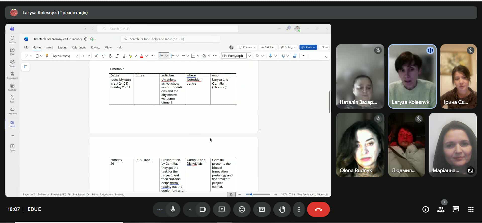 20 листопада відбулася перша зустріч в онлайн-форматі, під час якої учасники проєкту обговорили мету та основні завдання, обґрунтували напрями діяльності і шляхи реалізації запланованих заходів, вплив проєкту на зміст підготовки майбутніх педагогів до професійної діяльності, особливості впровадження засобів STEAM-освіти в процес фахової підготовки вихователів ЗДО та вчителів НУШ, розширення можливостей співпраці з педагогами-практиками.
