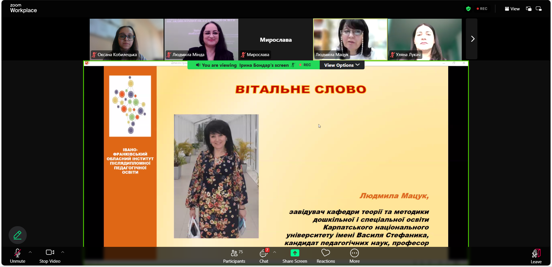 викладачі кафедри теорії та методики дошкільної і спеціальної освіти Карпатського національного університету імені Василя Стефаника. З вітальним словом виступила професор, завідувач кафедри Людмила МАЦУК.