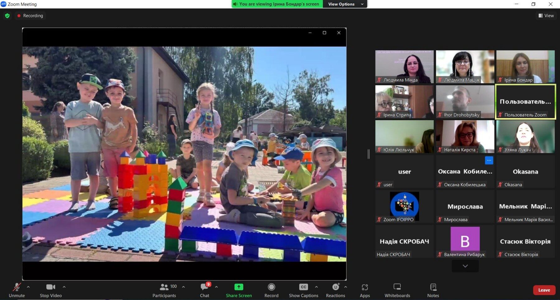 Щиро дякуємо організаторам Людмилі МІНДІ, методисту лабораторії дошкільної та початкової освіти, та Ірині Бондар, кандидату філософських наук, доценту кафедри менеджменту та освітніх інновацій Івано-Франківського ОІППО за запрошення, а також всім учасникам за активність і професійний діалог, спрямований на розвиток і захист дитинства!