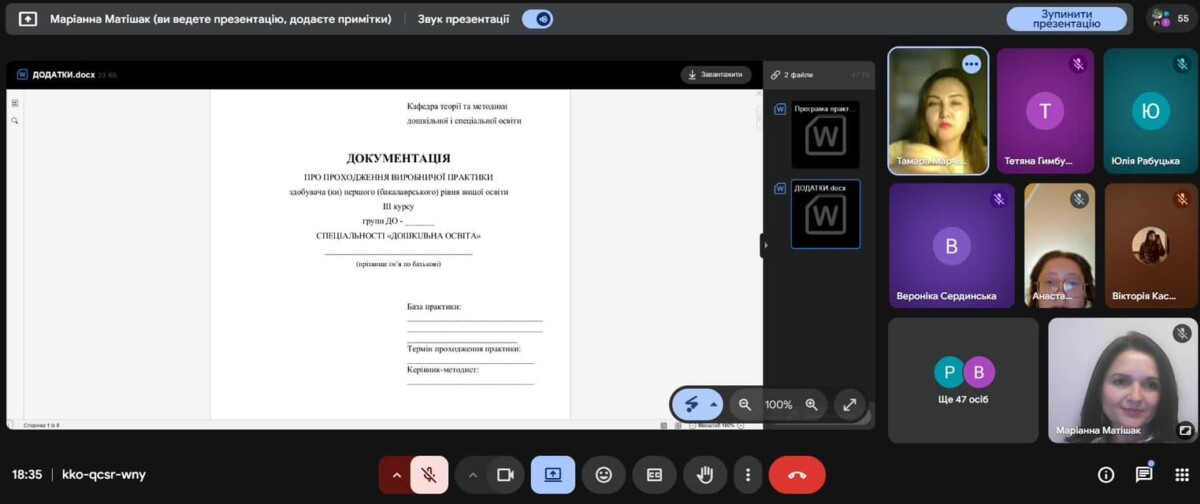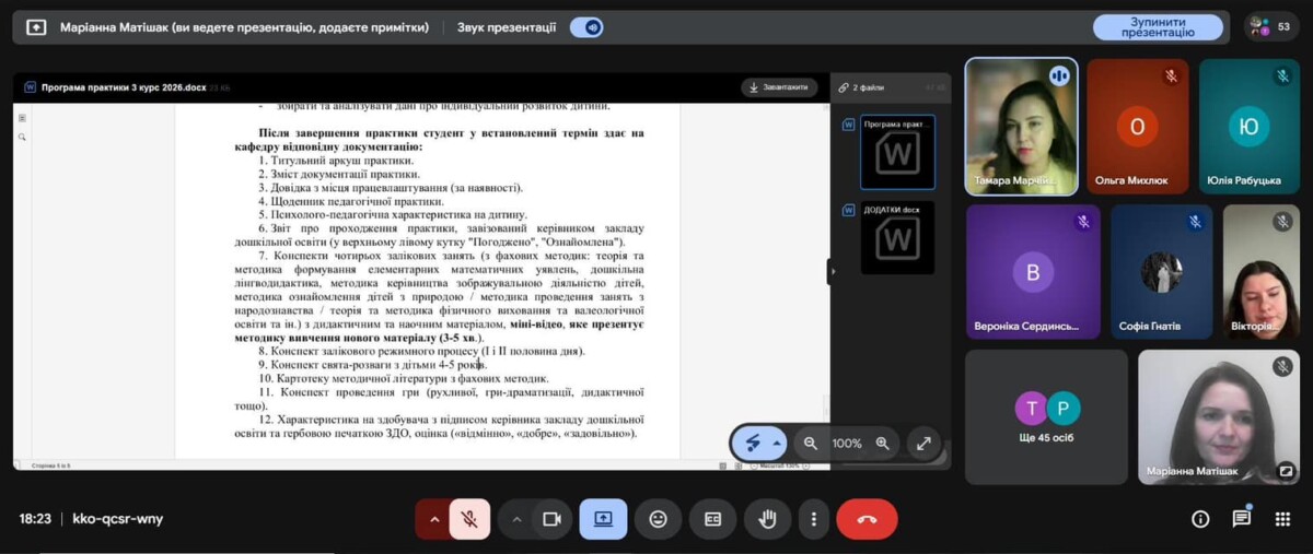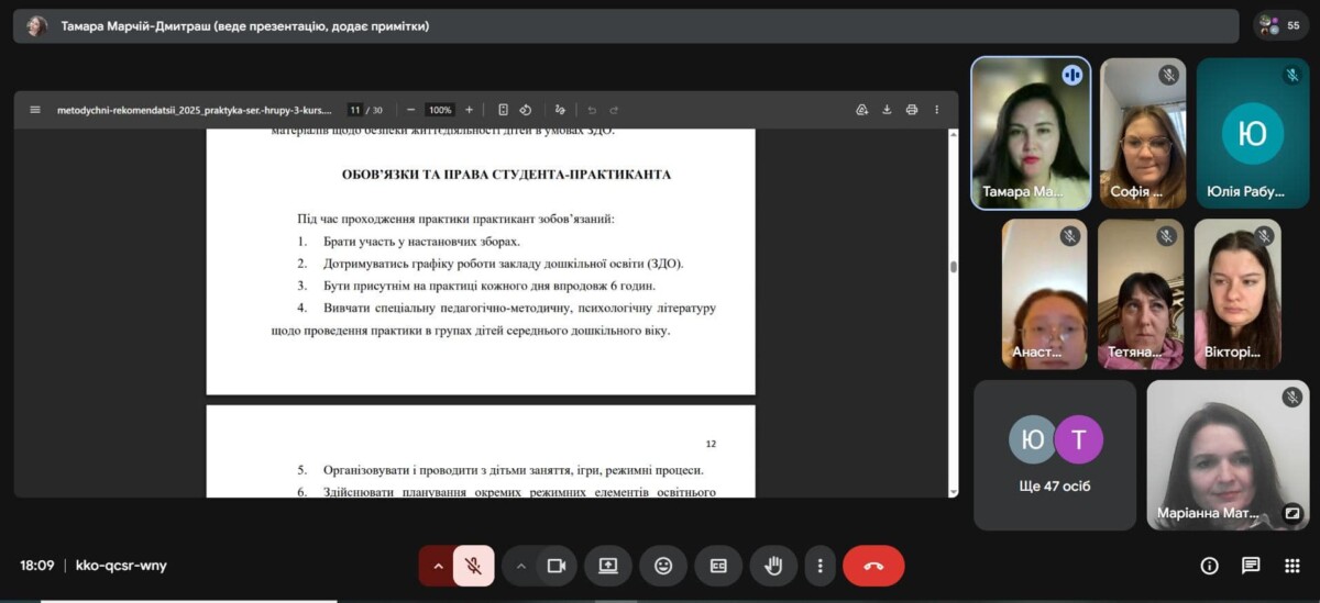25 березня відбулася настановча нарада щодо організації виробничої практики в групах дітей середнього дошкільного віку зі студентами 3 курсу денної та заочної форм здобуття вищої освіти.